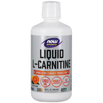 NOW L-Carnitine Liquid has all of the properties of carnitine in a highly absorbable liquid form. Carnitine is a non-essential amino acid that helps to maintain overall good health by facilitating the transfer of fatty acid groups into the mitochondrial membrane for cellular energy production.* It naturally occurs in red meat and other animal-source foods, but we recommend supplementation to obtain optimal levels of this excellent amino acid. NOW L-Carnitine is the purest form, clinically tested, and vegetarian (non-animal sourced). Natural color variation may occur in this product. Carnipure offers purest L-Carnitine and is a registered trademark of Lonza, Ltd., Switzerland.  1000 MG  Highly Absorbable  Fat Metabolism*  Citrus Flavor  Dietary Considerations Wheat Free Dairy/ Milk Free Gluten Free Vegetarian Soy Free Yeast Free Vegan Egg Free Shellfish Free  Serving Size:1 Tablespoon  Servings Per Container:63 Amount Per Serving Calories15 Total Carbohydrate4 g Vitamin B-6 (from Pyridoxine HCl)2 mg Pantothenic Acid(from D-Calcium Pantothenate)10 mg L-Carnitine (Carnipure™) (Free-Form Base)1 g Stevia Extract (Leaf)16 mg  Other Ingredients: De-ionized Water, Vegetable Glycerin, Malic Acid, Citric Acid, Natural Fruit Extracts and Flavors, Potassium Sorbate (as preservative), Lemon (Citrus limon) Oil  SUGGESTED USAGE: Shake well before using. As a dietary supplement, take 1 tablespoon 2 times daily, preferably on an empty stomach. Consider taking these other NOW® products: CLA and Lecithin. Not manufactured with yeast, wheat, gluten, soy, milk, egg, fish, shellfish or tree nut ingredients. Produced in a GMP facility that processes other ingredients containing these allergens.  Caution: For adults only. Consult physician if pregnant/nursing, taking medication, or have a medical condition. Keep out of reach of children. Store in a cool, dry place after opening. Please Recycle.