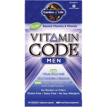 Made with individually “grown†nutrients utilizing probiotic cultivation to produce RAW Food-Created Nutrients, Vitamin Code supplements are delivered in a whole food base of fruits and vegetables. Vitamin Code supplements are RAW, which not only means that they are produced below 115º F, but also means that these nutrients come with their natural cofactors, along with live probiotics and enzymes, just like raw foods! Vitamin Code raw powders are delivered in capsules without any binders or fillers—everything you want and nothing you don’t want. Vitamin Code RAW ONE for Men is whole food nutrition, specifically formulated to meet the unique needs of men on-the-go and to deliver the nutrition men require for meeting the demands of life. 24 fruits and vegetables add supporting antioxidants, vitamins and nutrient cofactors. RAW means no high heat, synthetic binders, fillers, artificial flavors, sweeteners, colors or additives commonly used in tablets. Whole food means RAW Food-Created Nutrients are blended in a base of 24 fruits and vegetables together with food cofactors. Vitamin Code RAW ONE for Men Benefits: • Helps support energy and stress response* • Supports healthy heart and prostate* • Live probiotics and enzymes support healthy digestion* Vitamin Code RAW ONE for Men—a once-daily RAW whole food multivitamin providing energizing, stress-managing and other nutrients for men leading busy lives.  Dietary Considerations Gluten Free Kosher Vegetarian Preservative Free Free of Artificial Colors/Flavors Non-GMO  Serving Size:1 Capsule  Servings Per Container:75  Amount Per Serving% Daily Value Vitamin A (as beta-carotene)5000 IU100% Vitamin C60 mg100% Vitamin D (as D3)800 IU200% Vitamin E30 IU100% Vitamin K120 mcg150% Thiamin (Vitamin B1)1.5 mg100% Riboflavin (Vitamin B2)1.7 mg100% Niacin (as niacinamide)20 mg100% Vitamin B62 mg100% Folate400 mcg100% Vitamin B12 (as Methylcobalamin)24 mcg400% Pantothenic Acid10 mg100% Calcium (from Algae)18 mg2% Magnesium30 mg8% Zinc15 mg100% Selenium75 mcg110% Copper2 mg100% Manganese1 mg50% Chromium120 mcg100% Molybdenum20 mcg RAW Organic Amla Berry (Indian Gooseberry)120 mg RAW Organic fruit and vegetable blend:40 mg Organic Apple (fruit) Organic Beet (root) Organic Broccoli (stalk & flower) Organic Carrot (root) Organic Spinach (leaf) Organic Tomato (fruit) Organic Strawberry (fruit) Organic Tart Cherry (fruit) Organic Blackberry (fruit) Organic Green Bell Pepper (fruit) Organic Brussels Sprout (leaf) Organic Blueberry (fruit) Organic Ginger (root) Organic Garlic (bulb) Organic Green Onion (bulb) Organic Raspberry (fruit) Organic Parsley (leaf) Organic Cauliflower (flower & stem) Organic Red Cabbage (leaf) Organic Kale (leaf) Organic Cucumber (gourd) Organic Celery (stalk) Organic Asparagus (flower & stem) RAW Probiotic & Enzyme Blend:8 mg Lipase Protease Aspergillopepsin beta-Glucanase Cellulase Bromelain Phytase Lactase Papain Peptidase Pectinase Xylanase Hemicellulase Lactobacillus bulgaricus 500 Million CFU Lactobacillus plantarum 500 Million CFU  Other Ingredients: Vegetable cellulose (capsule), Organic rice (hull)  Suggested Use: Adults take 1 capsule daily. May be taken with or without food. Capsule may be opened and contents may be added to water or raw juice. Not intended for children. Non-GMO. Gluten free. Kosher. Vegetarian. Contains no filler ingredients, artificial colors or preservatives.  Caution: As with any dietary supplement, consult your healthcare practitioner before using this product, especially if you are pregnant, nursing, anticipate surgery, take medication on a regular basis or are otherwise under medical supervision.