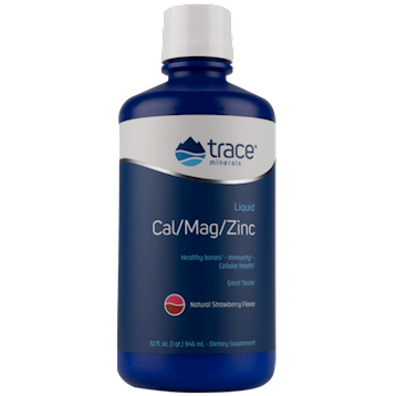 Recent research highlights the important health benefits of maintaining proper bone mass for a lifetime. Proper exercise and supplementation of calcium and vitamin D for those not getting enough in their diet can help promote healthy bones. Liquid Cal/Mag/Zinc is a perfectly balanced daily liquid supplement of calcium, magnesium, zinc and vitamin D synergistically formulated to support bone, muscle and connective tissue health. This fast-absorbing ionic liquid formula has a great Strawberry flavor. It also contains ConcenTrace, a full spectrum ionic trace mineral complex of over 72 trace minerals and elements that help to aid in the absorption process. As an additional benefit, calcium, magnesium and zinc play an integral role in the body’s energy generation and enzyme production at the cellular level. Liquimins, ionically charged liquid minerals from Trace Minerals Research. Surging with over 72 minerals and trace elements that your body needs for optimal health, Liquimins are absorbed quickly because they’re liquid. And because the minerals are ionically charged, they increase the absorption of other nutrients, too. • 1200 mg Calcium • 600 mg Magnesium • 15 mg Zinc • Vitamin D3 • ConcenTrace Dietary Considerations Gluten Free Vegetarian Serving Size: 2 Tablespoon Servings Per Container: 32 Amount Per Serving Calories45 Total Carbohydrate13 g Sugars8 g Vitamin D3 (as Cholecalciferol)400 IU Calcium (as Tri-Calcium phosphate, Citrate, Gluconate)1200 mg Phosphorus (from Tri-Calcium phosphate)675 mg Magnesium (from Citrate, ConcenTrace)600 mg Zinc (as Gluconate)15 mg Chloride (from ConcenTrace)60 mg Sodium5 mg ConcenTrace (Ionic Trace Minerals)435 mg Boron (from ConcenTrace)275 mcg Other Ingredients Purified water, natural vegetable glycerine, natural strawberry flavor, ionic trace minerals, citric acid, phosphoric acid, xanthan gum, potassium benzoate, potassium sorbate (for freshness) Suggested Use SHAKE WELL. Take 1 to 2 tablespoons daily (one capful = 2 tablespoons), to top off or fully supplement your diet. As this is a highly concentrated product, we recommend starting with 1 tablespoon and increase as needed, ideally spread throughout the day. We also recommend taking this product mixed into or with a large glass of liquid for the best isotonic balance. Warnings Excess magnesium may cause a laxative effect. Rinse cap after use. REFRIGERATE AFTER OPENING. Allergen Info: contains no known allergens. GLUTEN FREE.