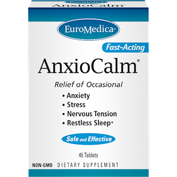 AnxioCalm is clinically studied to significantly relieve occasional anxiety and stress without daytime drowsiness. AnxioCalm is the safe and effective way to help relieve: Occasional anxiety and nervousness Everyday stresses Excessive worry  And related concerns such as: Excessive sweating Upset stomach Muscle tension Insecurity Occasional restless sleep  Dietary Considerations Wheat Free Gluten Free Soy Free Yeast Free Salt Free Corn Free Free of Artificial Colors/Flavors Non-GMO   Serving Size: 2 Tablet  Servings Per Container: 22  Amount Per Serving Narrow-leaved Coneflower (Echinacea angustifolia) Root Extract (EP107) standardized for proprietary echinacosides and a unique alkamide profile40 mg hypromellose titanium dioxide polydextrose talc maltodextrin medium chain triglycerides  Other Ingredients Cellulose powder, Lactose (milk), Aqueous film coating, Croscarmellose sodium, Vegetable source magnesium stearate, Silica  Suggested Use 1 or 2 tablets twice daily. May take at bedtime to support restful sleep. Children (ages 4-12): 1 tablet twice daily. May increase as directed by your healthcare practitioner.  Warnings No salt, yeast, wheat, gluten, corn, soy, artificial coloring, artificial flavoring, or artificial preservatives. Non-GMO. If pregnant or nursing, consult a healthcare practitioner before using.