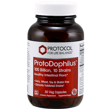 Probiotics are friendly bacteria that normally colonize the gut where they help to maintain structural and functional integrity of the intestinal lining, support proper intestinal motility, and participate in the detoxification process. The presence of healthy gut flora is also known to be critical for normal digestion and immune function. ProtoDophilus is a broad spectrum probiotic consisting of acid-resistant probiotic bacterial strains that have been clinically validated and are known to naturally colonize the human GI tract.The probiotic strains in this product have been identity-verified using DNA-fingerprinting technology.• Dairy, Wheat, Soy & Gluten Free• Clinically Validated StrainsDietary ConsiderationsWheat FreeDairy/ Milk FreeGluten FreeVegetarianSoy FreeVeganEgg FreeShellfish FreeNon-GMOFish FreeTree Nut FreeServing Size: 1 Vegetable CapsuleServings Per Container: 30Amount Per ServingBlend of 10 Strains 100 Billion CFU of Probiotic Bacteria:Lactobacillus acidophilus (La-14)Bifidobacterium lactis (Bl-04)Lactobacillus plantarum (Lp-115)Lactobacillus casei (Lc-11)Lactobacillus rhamnosus (Lr-32)Lactobacillus paracasei (Lpc-37)Bifidobacterium breve (Bb-03)Streptococcus thermophilus (St-21)Lactobacillus salivarius (Ls-33)Bifidobacterium longum (BI-05)Other Ingredients:cellulose (capsule), Cellulose powder, FOS (Fructooligosaccharides), ascorbyl palmitate, silicaSuggested Use: Take 1 capsule 1 to 2 times daily between meals or on an empty stomach, or as directed by your healthcare practitioner. Probiotic supplements may cause mild, but transient GI discomfort. Individuals with severe immune system deficit should consult their healthcare practitioner before taking this product. Because antibiotics may inactivate some probiotic bacteria, take at least 2 hours before or after taking antibiotic medications.Not manufactured with wheat, gluten, soy, milk, egg, fish, shellfish or tree nut ingredients. Produced in a GMP facility that processes other ingredients containing these allergens.This product is formulated to deliver a potency of 100 Billion CFU through the Best By date.Do not eat freshness packet. Keep in bottle.