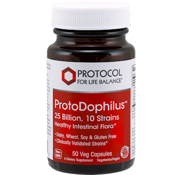 Probiotics are friendly bacteria that normally colonize the gut where they help to maintain structural and functional integrity of the intestinal lining, support proper intestinal motility, and participate in the detoxification process. The presence of healthy gut flora is also known to be critical for normal digestion and immune function. ProtoDophilus is a broad spectrum probiotic consisting of acid-resistant probiotic bacterial strains that have been clinically validated and are known to naturally colonize the human GI tract.The probiotic strains in this product have been identity-verified using DNA-fingerprinting technology.• Dairy, Wheat, Soy & Gluten Free• Clinically Validated StrainsDietary ConsiderationsWheat FreeDairy/ Milk FreeGluten FreeVegetarianSoy FreeVeganEgg FreeShellfish FreeNon-GMOFish FreeTree Nut FreeServing Size: 1 Vegetable Capsule Servings Per Container: 50 Amount Per ServingBlend of 10 Strains 25 Billion CFU of Probiotic Bacteria: 25 Billion CFULactobacillus acidophilus (La-14)Bifidobacterium lactis (Bl-04)Lactobacillus plantarum (Lp-115)Lactobacillus casei (Lc-11)Lactobacillus rhamnosus (Lr-32)Lactobacillus paracasei (Lpc-37)Bifidobacterium breve (Bb-03)Streptococcus thermophilus (St-21)Lactobacillus salivarius (Ls-33)Bifidobacterium longum (BI-05)Other Ingredients:Cellulose powder, cellulose (capsule), FOD (Fructooligosaccharides), ascorbyl aplmitate, SilicaTake 1 capsule 1 to 2 times daily between meals or on an empty stomach, or as directed by your healthcare practitioner. Probiotic supplements may cause mild, but transient GI discomfort. Individuals with severe immune system deficit should consult their healthcare practitioner before taking this product. Because antibiotics may inactivate some probiotic bacteria, take at least 2 hours before or after taking antibiotic medications. Do not eat freshness packet. Keep in bottle.