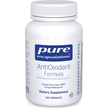 Offers a broad spectrum of antioxidants designed to help protect against free radical damage throughout the body.Free radicals are atoms, ions, or molecules with one or more unpaired electrons that bind to and destroy cellular compounds. Dietary antioxidants disarm free radicals through a number of different mechanisms. Foremost, they bind to the free electrons, ‘pairing up’ with them, creating an innocuous cellular compound that the body can eliminate as waste. The antioxidants in this formula also support the body’s natural defense mechanisms against free radicals: the enzymes superoxide dismutase, catalase, and glutathione peroxidase. Research points to the fact that a synergistic combination of antioxidants is more effective than the total effect of each antioxidant taken alone.• Protection against free radicals • Helps to support the body's natural defense mechanism against free radicals • Made with essential vitamins and minerals such as vitamin A, E, and B complex vitamins • Made with hypoallergenic ingredients  Dietary Considerations Gluten Free Non-GMO  Serving Size: 1 Capsule  Servings Per Container: 120  Amount Per Serving % Daily Value Vitamin A (as beta carotene) 3000 mcg 333%Vitamin E (as d-alpha tocopherol succinate) 67 mg 447%Riboflavin (vitamin B2) 25 mg 1923%Zinc (as zinc picolinate) 5 mg 45%Selenium (as selenomethionine) 100 mcg 182%N-acetyl-l-cysteine (NAC) (free-form) 100 mg Milk thistle (silybum marianum) extract (seed)(standardized to contain 80% silymarin) 100 mgMixed carotenoids (from lutein, lycopene and zeaxanthin) 500 mcg  Other Ingredients vegetarian capsule (cellulose, water), ascorbyl palmitate  Suggested Use As a dietary supplement, take 1 capsule, 1–2 times daily, with meals.  Warning If you are pregnant or lactating, have any health condition or are taking any medication, consult your health professional before use.Keep out of the reach of children.Use only if safety seal is intact. Store in a cool, dry place.