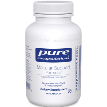 The comprehensive antioxidant formula for healthy eyes Macular Support Formula is a combination high in antioxidants and botanicals designed to protect and support the macula, the central area of the retina responsible for sharp vision. Since the macula is extremely susceptible to free radical damage, the research emphasizes the importance of antioxidant supplementation in maintaining and improving macular health. N-acetyl-l-cysteine, a glutathione precursor, has been shown to protect against oxidative damage to the lens and to support healthy glutathione levels. Glutathione is one of the natural antioxidants found in retinal tissues. Bilberry, containing anthocyanidins, may help moderate visual fatigue and improve light to dark adjustments. Combined with these cofactors, grape seed extract helps provide antioxidant balance in the retina. This formula is also enhanced with lutein and zeaxanthin, the only two carotenoids found in macular pigment. Lutein and zeaxanthin promote the integrity and density of the macular pigment, as well as helps maintain the health of the optical lens. The antioxidant activity of carotenoids and vitamin C provide optimal macular protection and ocular health. • Helps protect and promote eye health • May protect eyes from free radicals • Made with hypoallergenic ingredients  Dietary Considerations Gluten Free Non-GMO  Serving Size:2 Vegetable Capsule  Servings Per Container:30  Amount Per Serving% Daily Value Vitamin A (as beta carotene)7500 mcg833% Vitamin C (as ascorbic acid)800 mg889% N-Acetyl-L-Cysteine (free-form)250 mg Setria glutathione (reduced)50 mg Bilberry (Vaccinium myrtillus) extract (fruit) (standardized to contain 25% anthocyanosides)80 mg Grape (Vitis vinifera) extract (seed) (standardized to contain 92% polyphenols)50 mg FloraGLO lutein10 mg Zeaxanthin2 mg Proprietary mixed carotenoid blend (as lutein, lycopene, zeaxanthin)1445 mcg  Other Ingredients: vegetarian capsule (cellulose, water), ascorbyl palmitate  Suggested Use As a dietary supplement, take 2 capsules daily, with a meal.  Warning If you are pregnant or lactating, have any health condition or are taking any medication, consult your health professional before use. Keep out of the reach of children. Use only if safety seal is intact. Store in a cool, dry place.