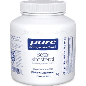 Phytosterol complex for prostate health and urinary functionBeta-sitosterol naturally occurs as part of a phytosterol complex and has the potential to support prostate health. In a 6-month randomized, double-blind, placebo-controlled, multicenter study with 200 male subjects, it was proposed that a mixed phytosterol complex providing beta-sitosterol supported healthy urinary flow. In an 18-month follow-up trial, beta-sitosterol maintained a healthy urinary function. These results have been supported in other clinical trials as well.• Supports prostate health • Made with plant-based, vegan ingredients  Dietary Considerations Gluten FreeNon-GMO  Serving Size: 1 Capsule  Servings Per Container: 270  Amount Per Serving Beta-sitosterol (from phytosterol complex) 60 mg  Other Ingredients hypoallergenic plant fiber (cellulose), vegetarian capsule (cellulose, water), ascorbyl palmitate  Suggested Use As a dietary supplement, take 1 capsule, 1–2 times daily, with meals. Contains: Soy.  Warning If you are pregnant or lactating, have any health condition or are taking any medication, consult your health professional before use. Keep out of the reach of children. Use only if safety seal is intact. Contents may not fill package in order to accommodate required labeling. Please rely on stated quantity.