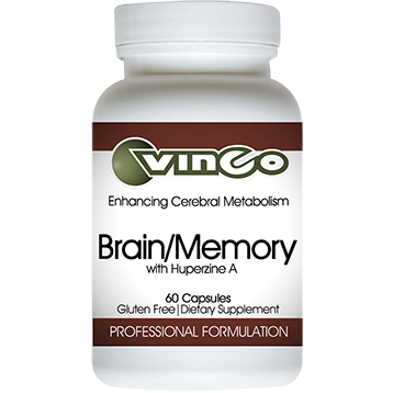 Dietary Supplement Professional Formulation Enhancing Cerebral Metabolism The ingredients in Vinco’s Brain/Memory have been shown to be beneficial in promoting a healthy management of cognition and memory recall Dietary Considerations Gluten Free Serving Size: 2 Capsule Servings Per Container: 30 Amount Per Serving Acetyl-L-carnitine 350 mg Phosphatide Complex 500 mg 24% phosphatidylcholine 20% phosphatidylethanolamine 14% phosphatidylinositol Bacopa monniera Extract 150 mg 20% Bacosides A&B Vinpocetine † 5 mg Huperzine A (from Huperzia serrata extr.) † 100 mcg Directions for Use: As a dietary supplement for adults and children twelve or more years of age, take one to three capsules per day, or as directed by a qualified healthcare professional. Gluten Free KEEP OUT OF REACH OF CHILDREN Tamper resistant. Do not purchase if seal is broken. Store in a cool, dry place Warning: This product contains vinpocetine. Do not consume this product if you are pregnant or could become pregnant. The FDA has warned that consumption of vinpocetine may be associated with adverse reproductive effects.