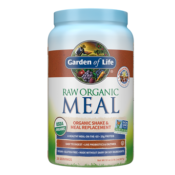 Raw Organic Meal is a delicious organic MEAL-ON-THE-GO packed with incredible nutrition to help you satisfy hunger, manage weight and feel great! Raw Organic Meal uniquely combines the goodness of multiple Garden of Life products in one complete raw organic meal replacement. Basically, it has the nutrition of seven products in one container! Raw Organic Meal delivers 20 grams of clean protein per scoop from 13 raw sprouted ingredients, along with greens, healthy fat, 7g of Organic Fiber, probiotics, enzymes, plus 21 vitamins and minerals.You have a busy, on-the-go life and lifestyle, but you still want to eat healthy, so fast food is just not an option for you. That’s why there’s Raw Organic Meal - convenient, organic shake and meal replacement that’s packed with 44 superfoods that not only satisfies your hunger, but also is naturally filling while boosting energy, and provides you with the protein, fiber, vitamins and minerals you would find in a healthy shake or meal of raw foods. A one-scoop serving delivers 20 grams of clean Certified USDA Organic and Non-GMO Project Verified protein, while two scoops pack a whopping 40 grams of clean organic protein—all from 13 organic sprouted grains and seeds. RAW Organic Meal also includes fruits and vegetables, greens juices, has live probiotics and enzymes as well as 21 whole food vitamins and minerals. Just as important is what’s not in RAW Organic Meal. It has no gluten, soy, dairy, tree nuts, filler ingredients, artificial colors, flavors, sweeteners or preservatives. And it’s RAW—since heat and processing can denature proteins.Raw Organic Meal Shake & Meal Replacement Benefits:• Convenient organic, Raw shake and meal replacement• Helps support energy and muscles• Helps you stay full and can help support a healthy weight• 1.5 Billion live probiotics plus enzymes to support digestive healthRaw Organic Meal—a yummy tasting organic meal-on-the-go packed with incredible nutrition to help you satisfy hunger, manage weight and feel great! Dietary considerations Gluten free Suggested use Mix 1 level scoop (scoop included) with 8oz of cold water. Servings per container: 14 Amount Per Serving: Calories … 150 Total Fat … 2g Saturated Fat … 0.5g Trans Fat … 0g Polyunsaturated Fat … 1g Monounsaturated Fat … 0.5g Cholesterol … 0mg Sodium … 190mg Total Carbohydrate … 13g Dietary Fiber … 7g Total Sugars … 0g Includes 0g Added Sugars Protein … 20g Ingredients: Organic Sprouted Protein Blend: Organic Pea Protein, Organic Sprouted Brown Rice Protein, Organic Amaranth (sprout), Organic Buckwheat (sprout), Organic Millet (pearl & sprout), Organic Quinoa (sprout), Organic Chia Seed (sprout), Organic Adzuki Bean (sprout), Organic Flax Seed (sprout), Organic Garbanzo Bean (sprout), Organic Lentil (sprout), Organic Pumpkin Seed (sprout), Organic Sesame Seed (sprout), Organic Sunflower Seed (sprout), Organic Flavor Blend: Organic Vanilla & Chai Flavors with Other Organic Natural Flavors, Organic Erythritol, Organic Stevia Extract (leaf), Sea Salt, Organic Fiber Blend: Organic Tapioca Fiber, Organic Guar Gum, Organic Flax Meal, Organic Fruit & Vegetable Blend: Organic Spinach (leaf), Organic Baobab (fruit), Organic Apple (fruit), Organic Beet (root), Organic Broccoli (stalk & flower), Organic Carrot (root), Organic Tomato (fruit), Organic Green Bell Pepper (fruit), Organic Brussels Sprout (teaf), Organic Ginger (root), Organic Garlic (bulb), Organic Onion (bulb), Organic Strawberry (fruit), Organic Cherry (fruit), Organic Parsley (leaf), Organic Cauliflower (flower & stem), Organic Blackberry (fruit), Organic Cabbage (leaf), Organic Blueberry (fruit), Organic Raspberry (fruit), Organic Kale (leaf), Organic Cucumber (gourd), Organic Celery (stalk), Organic Asparagus (flower & stem), Organic Greens Blend: Organic Alfalfa Grass Juice, Organic Spirulina, Organic Barley Grass Juice, Organic Oat Grass Juice, Organic Wheat Grass Juice, Whole Food Vitamin & Mineral Blend: Vitamin C, Vitamin E, Niacin, Zinc, Pantothenic Acid, Folate, Vitamin A (beta-carotene), Biotin, Vitamin 82 (Riboflavin), Vitamin 86, Vitamin 81 (Thiamin), Vitamin D, Vitamin B12 (as Methy|cobalamin), Vitamin K, Chromium, Probiotic & Enzyme Blend: Lipase, Protease, Aspergillopepsin, beta-Glucanase, Cellulase, Bromelain, Phytase, Lactase, Papain, Peptidase, Pectinase, Hemicellulase, Xylanase, Bocittus subtilis DE111° (250 million CFU at time of expiration). Other Ingredients Organic Vanilla & Chai Flavors with Other Organic Natural Flavors, Organic Erythritol, Organic Stevia Extract (leaf), Sea Salt Contains: Sesame. Warnings Contains: Tree nuts (Coconut) Raw - Vegan - Certified Organic - Gluten Free - Dairy Free - Lactose Free - Soy Free - No Fillers - No Synthetic Nutrients - No Artificial Flavors or Sweeteners - No Preservatives - No Pea Protein Contains no filler ingredients, artificial colors, flavors, sweeteners or preservatives. Packaged by weight not volume. Settling may occur. Store in a cool, dry place. Do not use if safety seal is broken or missing. Keep out of reach of children.