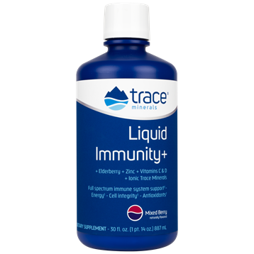 Liquid Immunity+ provides several nutrients for a multi-dimensional approach to support optimum immune system function.†In addition to immune-boosting properties, these nutrients also provide the following health benefits:  Dietary Considerations Gluten Free Vegetarian  Serving Size:2 Tablespoon  Servings Per Container:30  Amount Per Serving% Daily Value Calories40 Total Carbohydrate10 g4% Glycerol6 g Vitamin C (as Ascorbic Acid)1000 mg1111% Vitamin D3 (as Cholecalciferol)30 mcg150% Magnesium (from ITM)10 mg2% Zinc (as Zinc Gluconate, Zinc Glycinate)15 mg136% Chloride (from ITM)50 mg2% Black Elderberry200 mg Ionic Trace Minerals (ITM) Complex A concentrated complex of full spectrum ionic trace minerals150 mg  Other Ingredients: Purified water, vegetable glycerin, natural flavors, citric acid, xanthan gum, stevia extract (Reb A), potassium benzoate (for freshness), potassium sorbate (for freshness) Shake vigorously before each use. Mix 2 tbsp. with a glass of juice or water or take straight if desired. Rinse cap after each use. Refrigerate after opening. No known allergens.