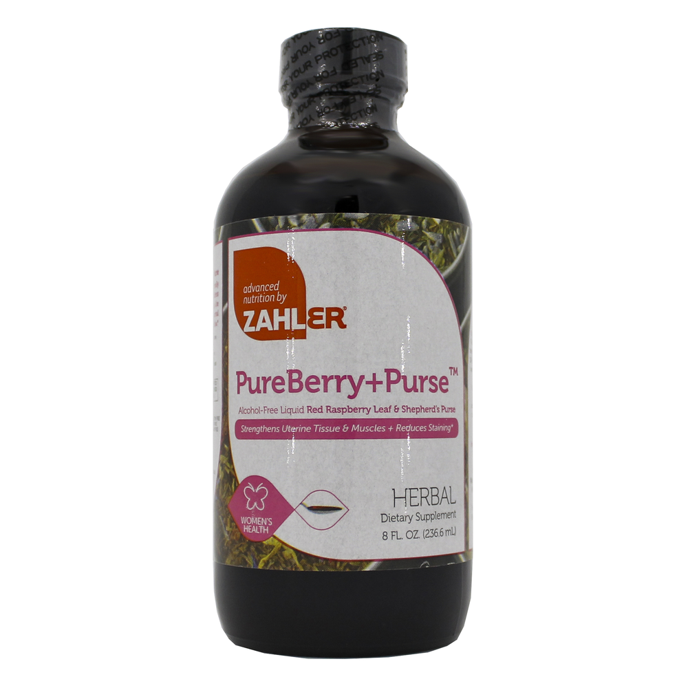 PureBerry+PurseZahler's PureBerry+Purse contains Red Raspberry and Shepherd's Purse for uterine tissue and menstrual support.  Suggested Use Mix 1.5 teaspoons with 2 ounces of water or juice twice daily or as directed by a healthcare practitioner. Shake well before using.  Serving Size: 1.5 Teaspoon (7.5mL)  Amount Per Serving Calories ... 25 Total Carbohydrate ... 5g Red Raspberry Leaf Extract ... 625mg(Rubus idaeus) Herbal equivalent of 1875mg Shepherd's Purse … 290mg(Capsella bursa-pastoris) Aerial Parts Extract Herbal equivalent of 1875 mg  Other Ingredients Kosher Vegetable Glycerin, Purified Water, Natural Mixed Berry Flavor, Peppermint Essential Oil. Gluten Free, Dairy Free, Soy Free