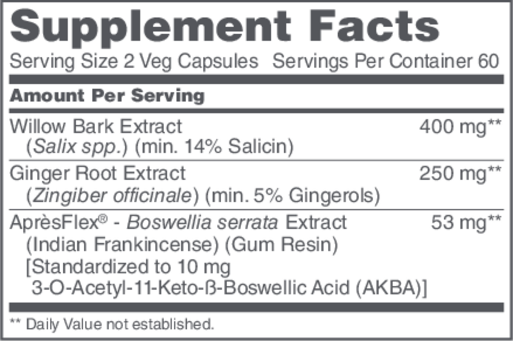 Ginger Root Extract 250 mg (Zingiber officinale) (min. 5% Gingerols) AprèsFlex - Boswellia serrata Extract 53 mg (Indian Frankincense) (Gum Resin) [Standardized to 10 mg 3-O-Acetyl-11-Keto-ß-Boswellic Acid (AKBA)]