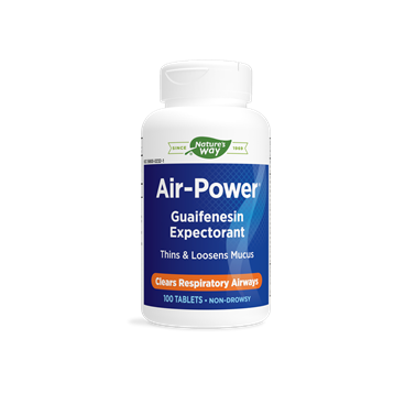 Fast-acting Air-Power guaifenesin expectorant helps thin and loosen mucus, making coughs more productive and clearing airways for respiratory comfort. This non-drowsy formula contains the expectorant guaifenesin in a base of natural herbs and is safe for both adults and children.