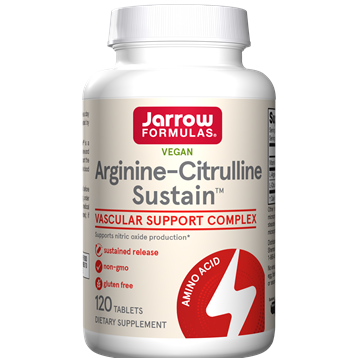 $35.99"Jarrow Formulas Arginine-Citrulline Sustain is a synergistic combination of sustained-release arginine and citrulline in equal amounts plus vitamin C to support the vascular production of nitric oxide (NO), promote blood flow, and support cardiovascular health."