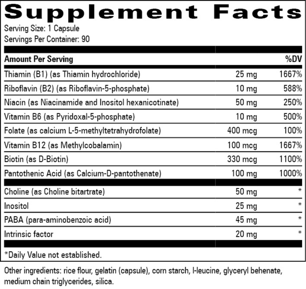 Vitamin B12 as methylcobalamin, instead of inactive cyanocobalamin. B12 supports DNA replication and healthy nerve cell function..