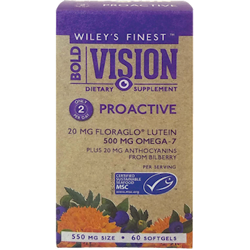 $46.99Bold Vision: Proactive delivers select nutrients in two small softgels. Featuring FloraGLO, the most clinically studied lutein, along with Omega-7 from Fish Oil, Anthocyanins from European Bilberry, and Astaxanthin from algae, Proactive nourishes eyes and supports healthy vision in adults of all ages.