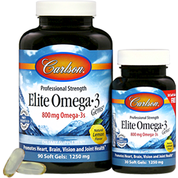 Carlson Elite Omega-3 Gems is a professional-strength fish oil concentrate. A single serving provides 1,600 mg of omega-3s, including the important omega-3s EPA and DHA, which promote heart, brain, vision, and joint health.* To ensure maximum freshness, Elite Omega-3 Gems is closely managed from sea to store. Carlson Labs sources the highest quality, deep, cold-water fish using traditional, sustainable methods. And like all Carlson omega-3s, freshness, potency, and purity are guaranteed.