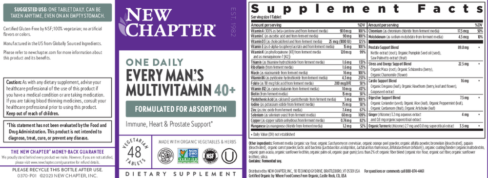 $53.99Dietary Supplement NON-GMO Project Verified. Organic herbs and cultured whole-food complexed vitamins and minerals work together to promote optimal health and condition-specific benefits, not just address nutrient deficiencies. Every Man’s One Daily 40+ is a once-daily probiotic whole-food complexed multivitamin formulated specifically for men 40 and over.