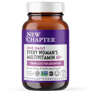 $74.99If you're looking for the right multivitamin for women over 40, New Chapter has got you covered with this one-daily, nutrient-packed formula for energy support, immune, skin, eye, and breast health, and so much more. Enhance your overall wellness with essential vitamins and minerals fermented with probiotics, and formulated for your body to recognize and absorb as food. Our easily digestible multivitamins for women 40 plus are gentle even on an empty stomach. Here at New Chapter, we sustainably source the highest quality ingredients and craft with you and our planet in mind. We do all this, so you can do you. That’s wellness, well done. These statements have not been evaluated by the Food and Drug Administration. This product is not intended to diagnose, treat, cure or prevent any disease.