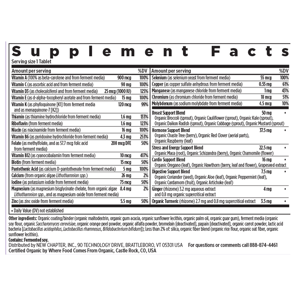 $53.99If you're looking for the right multivitamin for women over 40, New Chapter has got you covered with this one-daily, nutrient-packed formula for energy support, immune, skin, eye, and breast health, and so much more. Enhance your overall wellness with essential vitamins and minerals fermented with probiotics, and formulated for your body to recognize and absorb as food. Our easily digestible multivitamins for women 40 plus are gentle even on an empty stomach. Here at New Chapter, we sustainably source the highest quality ingredients and craft with you and our planet in mind. We do all this, so you can do you. That’s wellness, well done. These statements have not been evaluated by the Food and Drug Administration. This product is not intended to diagnose, treat, cure or prevent any disease.