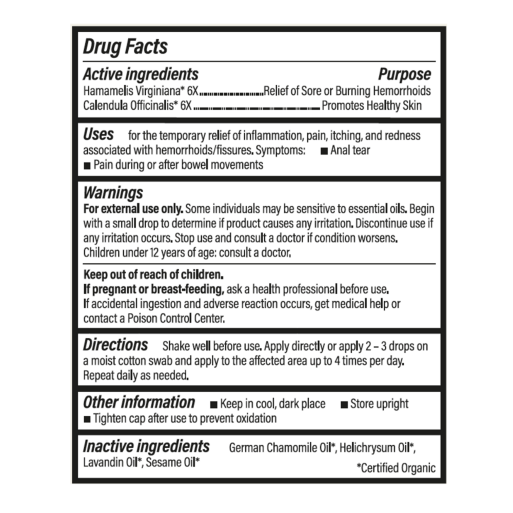 Hamamelis virginiana 6X - Relief of sore or burning hemorrhoids Calendula officinalis 6X - Promotes healthy skin