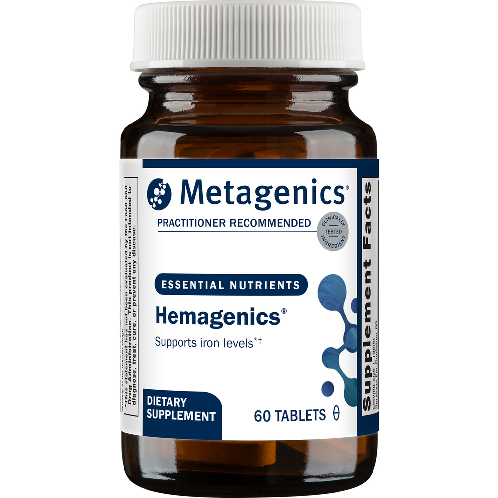 Hemagenics is a blend of iron, B vitamins, and other nutritional factors designed to support healthy red blood cells.