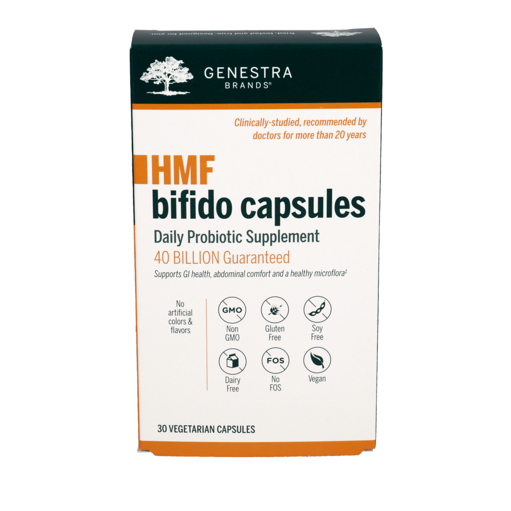 HMF Bifido Capsules offer six proprietary Bifidobacteria strains to support probiotic colonization in the large intestine. Bifidobacteria are normally present in the gut from birth to old age, where they play an important role in gastrointestinal health. Bifidobacteria help to mediate carbohydrate fermentation in the large intestine and contribute to the production of important short-chain fatty acids (SCFAs), including acetate and lactate. Although they are the most abundant genus present in the guts of healthy infants, Bifidobacteria concentrations decrease as individuals age, with greatest declines observed in the elderly. Clinical research suggests that Bifidobacteria supplementation can promote a healthy gut flora composition, support gastrointestinal comfort, and may have a particular role in maintaining immune function. HMF Bifido Capsules provide highly researched probiotic strains such as Bl-04, CUL-34 and CUL-20, which have been demonstrated in clinical trials to contribute to gastrointestinal and immune health.