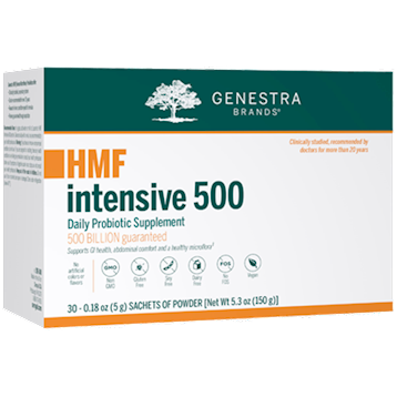 HMF Intensive 500 is our most concentrated probiotic formula yet, providing 500 billion CFU daily from a combination of five human-sourced, research-driven strains. Included in this blend are three strains of Lactobacilli and two strains of Bifidobacteria to ensure colonization in both the small and large intestines. These proprietary strains were selected based on their high quality, viability, strong epithelial adherence and naturally high tolerance to stomach acid. HMF probiotics have been evaluated for their effectiveness in clinical trials over the past 15 years and are some of the most studied probiotic cultures in the world. Research has reported that strains present in HMF Intensive 500 contribute to a favorable gut flora balance, support gastrointestinal comfort and maintain immune health (when combined with vitamin C). Provided in a convenient, once-daily powder format, HMF Intensive 500 is an easy way to support daily gastrointestinal health.*