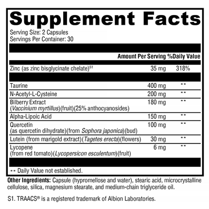 Capsule (hypromellose and water), stearic acid, microcrystalline cellulose, silica, magnesium stearate, and medium-chain triglyceride oil.