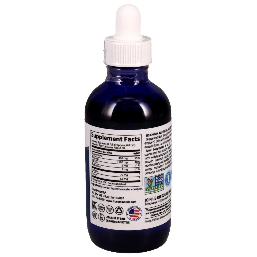 Ionic Single Minerals from Trace Minerals Research combines high quality single mineral ingredients and over 72 trace minerals and elements from ConcenTrace in a unique new proprietary process. This unique blend gives the body the type of minerals that it readily recognizes and absorbs fast because of its liquid Ionic state.