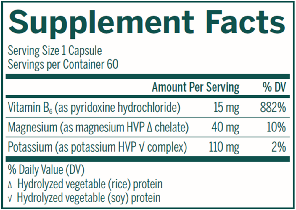 Vitamin B6 (pyridoxine hydrochloride) 15 mg 882%
