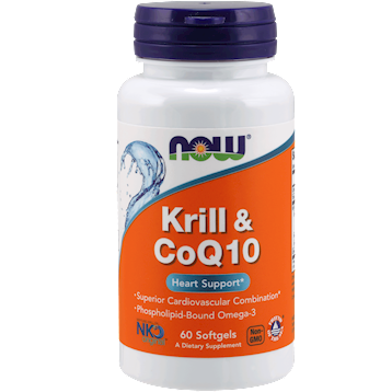 $44.99NOW Krill & CoQ10 Softgels combine two of the most prominent and effective nutrients for cardiovascular health in one convenient supplement.* CoQ10 is a vitamin-like compound that’s clinically demonstrated its ability to support heart health through its effects on cellular energy production.* Krill oil has naturally occurring omega-3 essential fatty acids, which are well-known for their vital role in cardiovascular health.* Together these two nutrients form a powerful combination supplement for the support of normal, healthy, cardiovascular functions.*