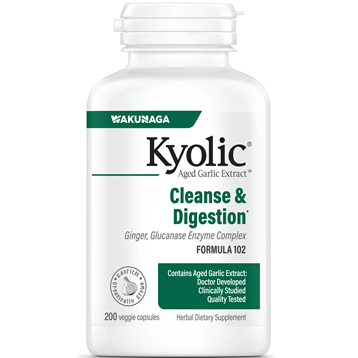 • Kyolic Formula 102 herb and enzyme blend, contains a unique natural and synergistic combination Aged Garlic Extract, Ginger, Glucanase, Lipase and Protease to support internal cleansing , healthy intestinal function and digestive balance.
