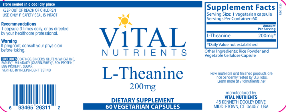 Vital Nutrients L-Theanine 200 mg 60 caps