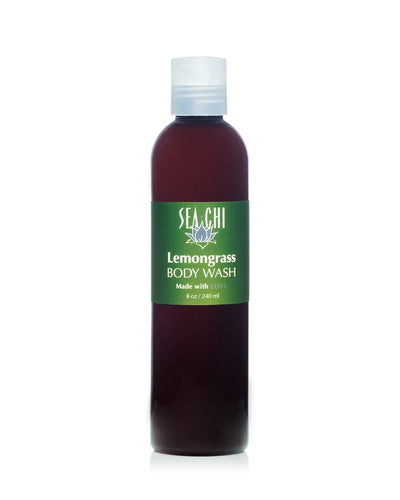 Sea Chi Organics Lemongrass Body Wash 240ml / 8oz Amber plastic bottle w/ white flip cap