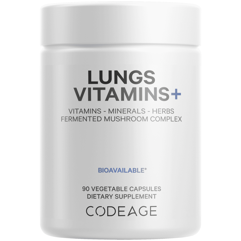 Codeage Lungs Vitamins+ features chelated minerals, organic herbal extracts, and fermented foods to provide a comprehensive nutritional profile.