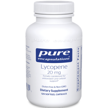 Pure Encapsulations' Lycopene provides a natural tomato extract rich in lycopene, various carotenoids, vitamin E, and other important phytochemicals. Data from over 47,000 participants in the Health Professionals Follow-Up Study suggested that tomato or lycopene intake was positively associated with prostate cell health. In another study involving 30 male subjects, supplementation with lycopene promoted healthy prostate function. This was one of the first randomized, prospective clinical trials to suggest that a lycopene supplement; rather than dietary tomato consumption, supported prostate health.