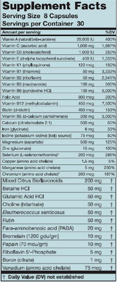 This product contains no yeast, wheat, soy, corn, milk, salt, sugar, artificial coloring, preservatives or flavoring. This product is intended for professional use and is manufactured under strict quality control to ensure the optimum in purity, potency and reliability.