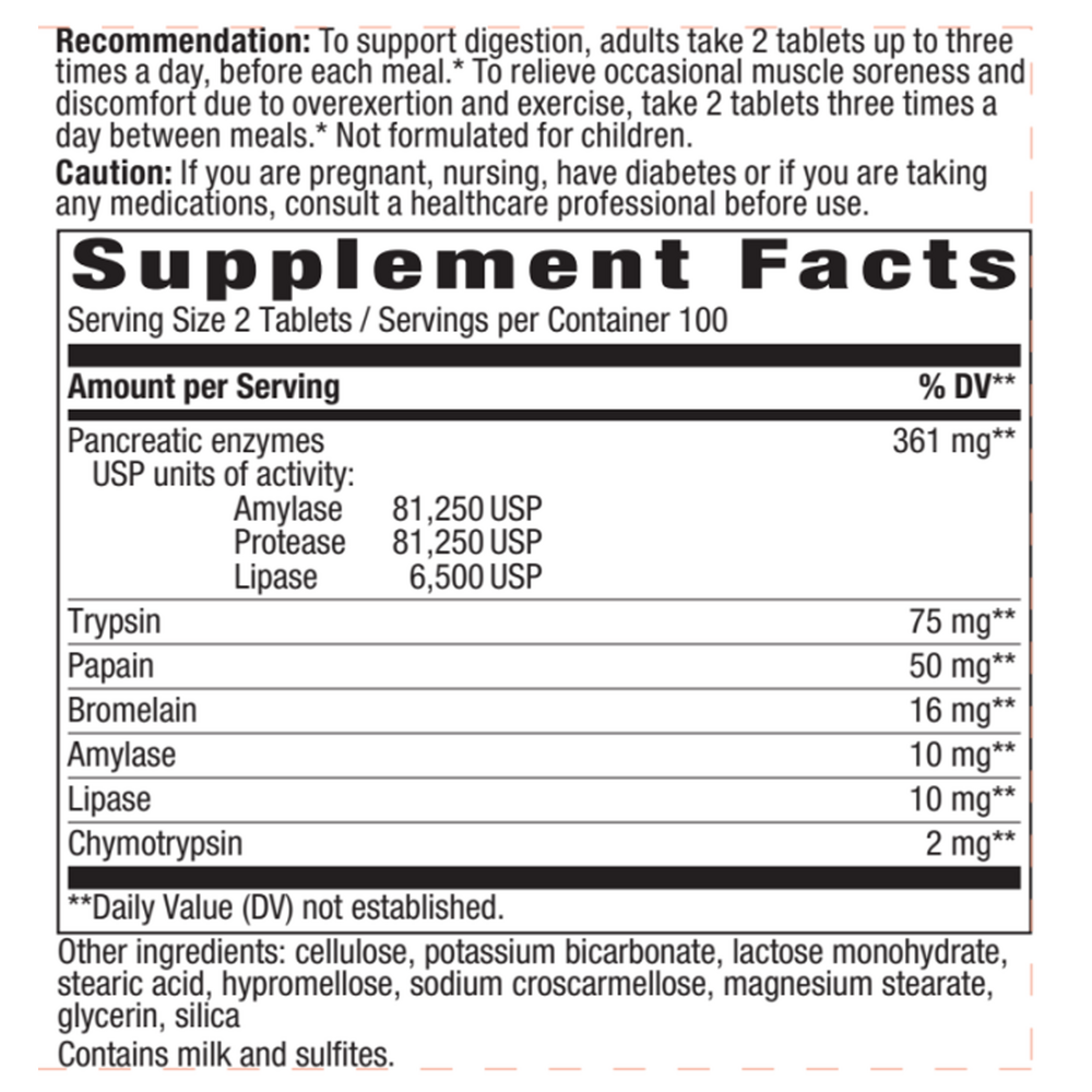 To support digestion, adults take 2 tablets up to three times a day, before meals. To relieve occasional muscle soreness and discomfort due to overexertion and exercise, take 2 tablets three times a day between meals. Not formulated for children.