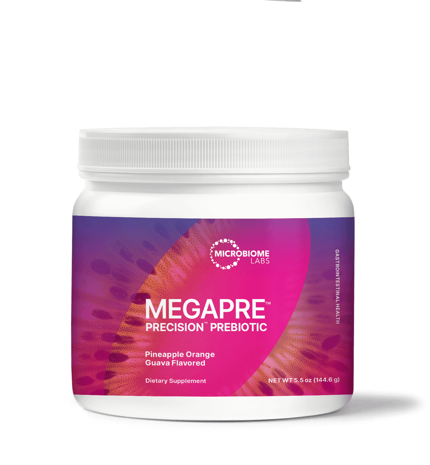 MegaPre is a cutting-edge Precision Prebiotic supplement made up of clinically-tested, non-digestible oligosaccharides that can increase microbial diversity and selectively feed beneficial, keystone bacteria like Akkermansia muciniphila, Faecalibacterium prausnitzii, and Bifidobacteria.
