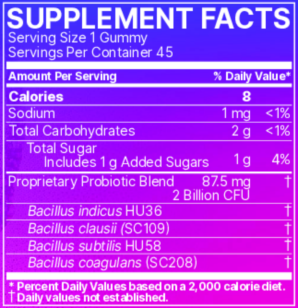 MegaSporeBiotic for Kids gummies contains four Bacillus spore-forming probiotic bacterial strains that are naturally designed to navigate digestion with 99.99% survivability. They arrive in the gut, transition from spore to active form, and provide a practical and functional way for the gut microbiome to receive essential daily support. MegaSporeBiotic for Kids probiotic gummies combines spore-based probiotics survivability with an innovative delivery method to support gut microbiome health and simplify daily life. Convenient and easy to consume, they’re a no-fuss addition to any daily routine!