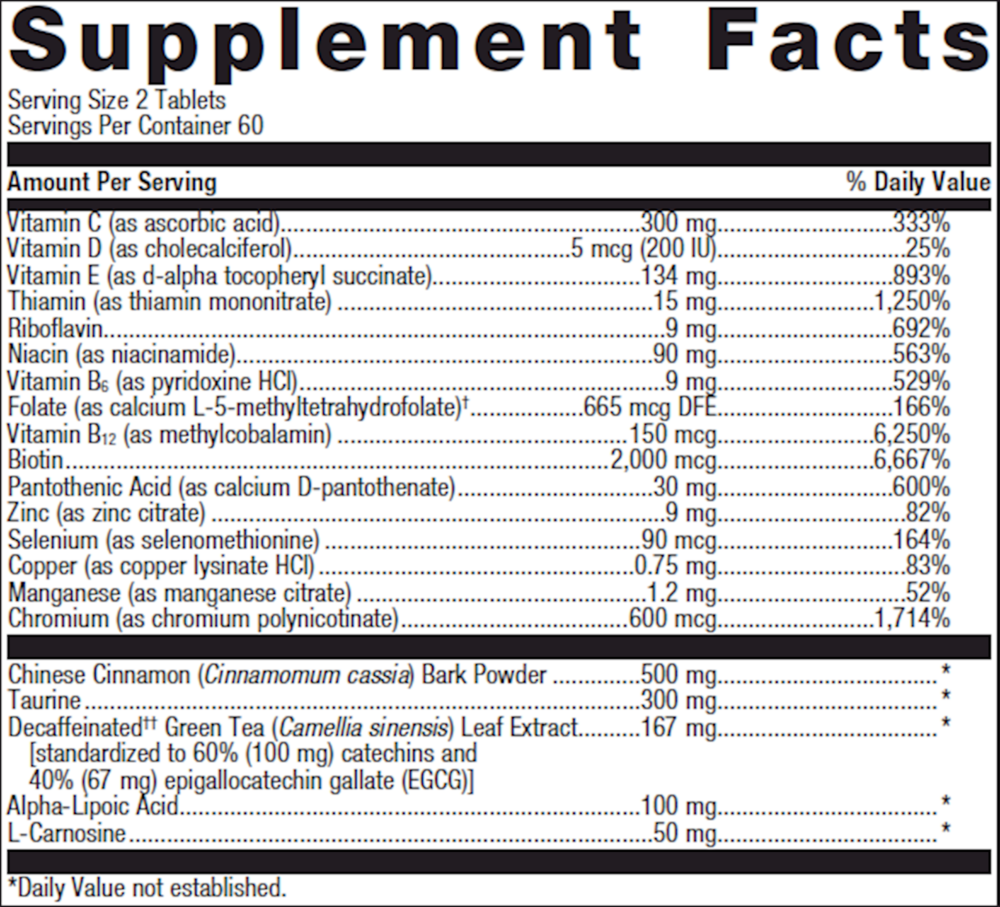 • Combines green tea extract, cinnamon, and alpha-lipoic acid to maintain healthy blood sugar levels
