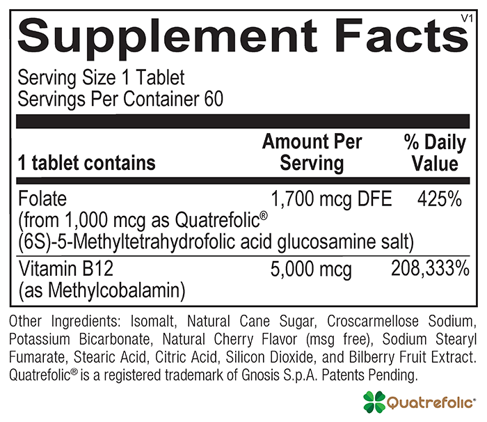 $28.00 $32.00Methyl B12 includes a concentrated and bioavailable source of two key B vitamins- B12 and folate. Each tablet provides 5,000 mcg of methylcobalamin and 1,000 mcg of folate as Quatrefolic (100% 5-MTHF).