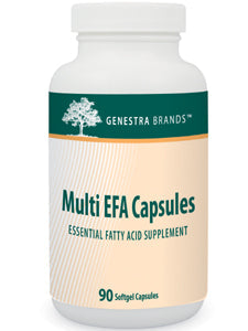 Multi EFA Capsules contain a unique blend of fish, flax and borage seed oils. Fish oils provide omega-3 fatty acids that support brain, eye and cardiovascular health. DHA is the most abundant omega-3 fatty acid in the brain, and it provides support for cognitive and ocular health. Supplementation with fish oils may support neural functioning in the hippocampus, a region of the brain associated with memory. Flax and borage seed oils provide essential fatty acids (EFA), including ALA, LA, and GLA, that further maintain optimal health. EFA, especially LA and GLA, promote skin health by supporting epithelial cell function, maintaining the integrity of the epidermal barrier, and helping maintain water and electrolytes in the skin. LA accounts for approximately 12% of the total fatty acid content of the skin.
