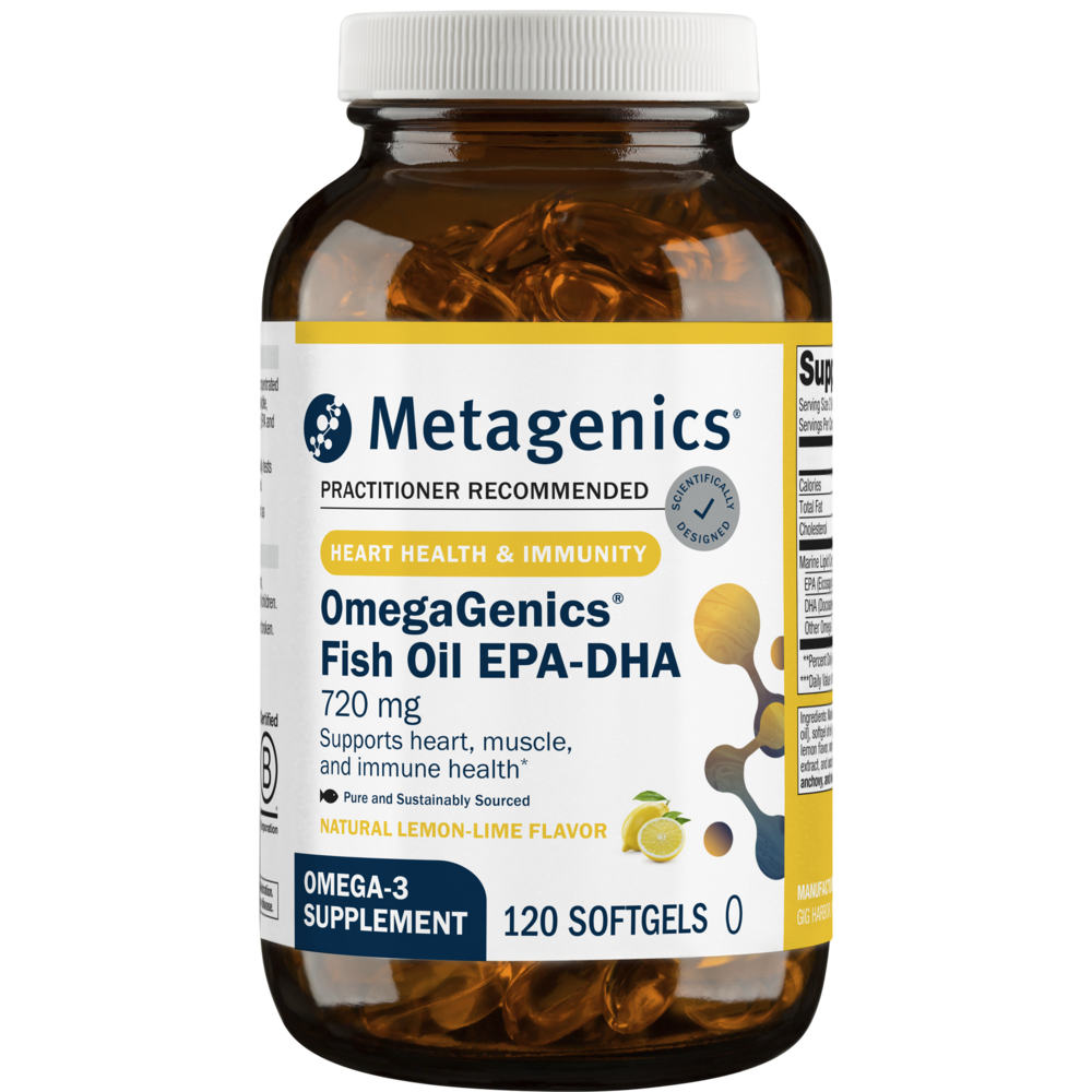 OmegaGenics EPA-DHA 720 features a concentrated, purified source of omega-3 fatty acids from sustainably sourced, coldwater fish. Each softgel provides a total of 430 mg EPA and 290 mg DHA.
