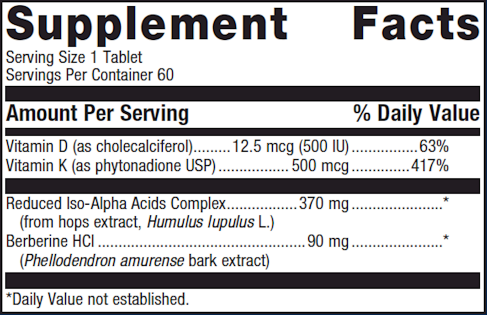 • Advanced formula: Vitamins D and K, phytonutrients, berberine, and SKRMs (selective kinase response modulators)