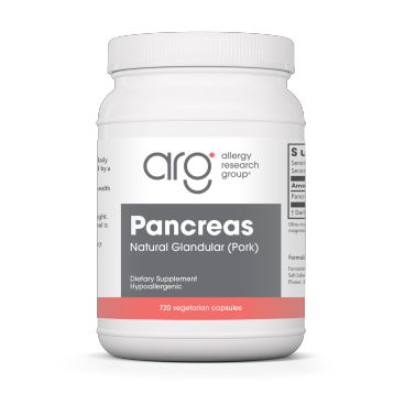 $204.99Provides pancreas tissue. Properly prepared pancreas glandular substance contains amylase, protease, and lipase, as well as other digestive factors naturally occurring in the pancreas. Pancreas Natural Glandular products from lamb, pork and beef can be used in a dietary rotation plan by those who are highly sensitive. Allergy Research Group natural glandular material is derived from government-inspected, range-fed animals, raised in New Zealand and Australia, whose animal husbandry regulations are among the strictest in the world. The material is lyophilized, which means it is immediately frozen, then subjected to a high vacuum that vaporizes moisture directly from the solid state. Formulated by Dr. Nicholas Gonzalez M.D.
