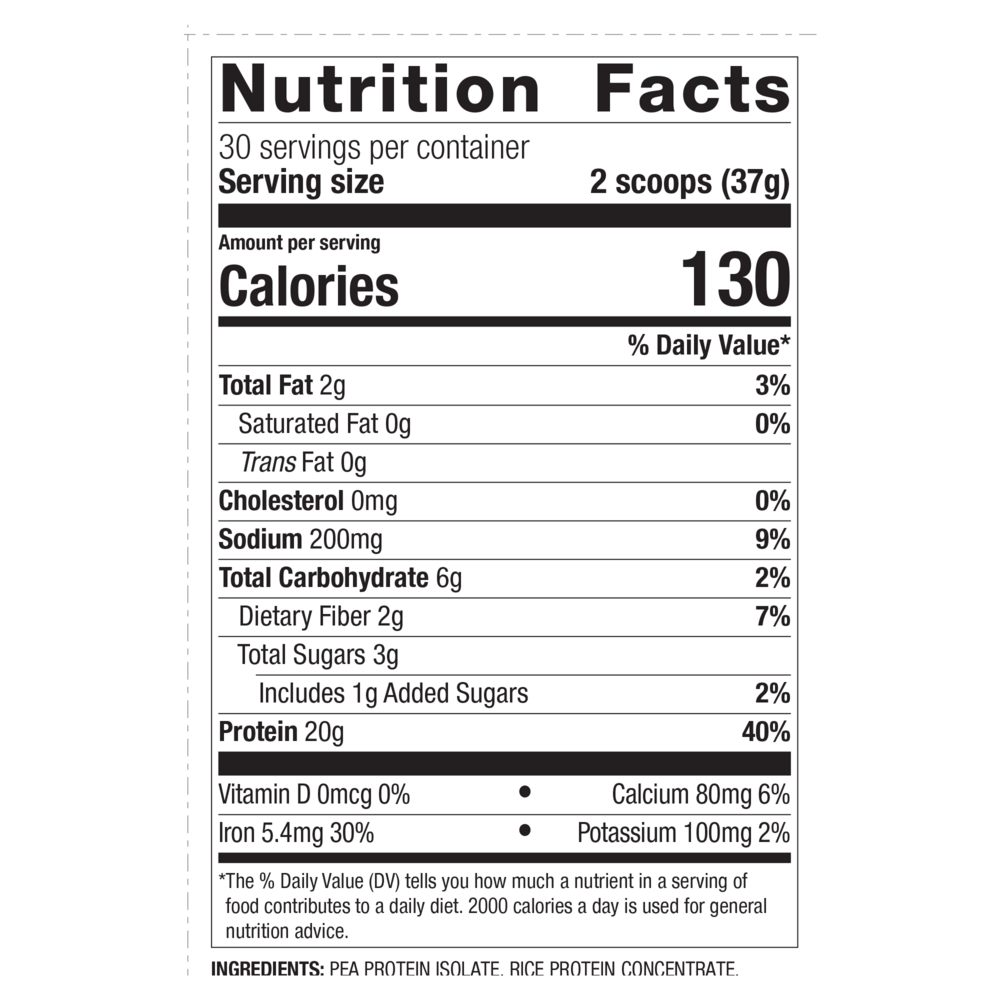 Perfect Protein Pea & Rice features OptiProtein—a balanced combination of 20 grams of a high quality, proprietary pea and rice protein blended with 3.5 grams of added essential amino acids (EAAs) to deliver a complete protein source that helps to support a healthy, active lifestyle.