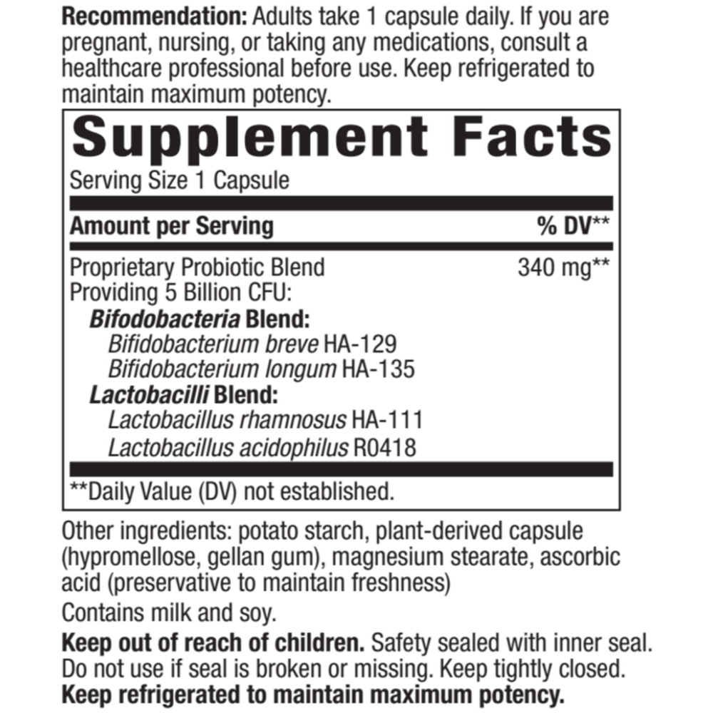 Providing 5 Billion CFU: Bifidobacteria Blend: Bifidobacterium breve HA-129;
