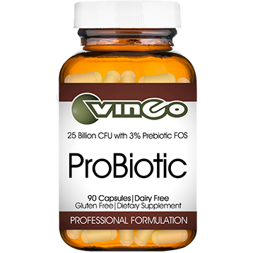 $39.00Dietary Supplement Professional Formulation 25 Billion CFU/Gram with 3% Prebiotic FOS Vinco's ProBiotic contains a 50/50 blend of symbiotic Lactobacillus acidophilus and Bifidobacterium lactis, with 3% FOS. Prebiotic (FOS) is a bifidogenic factor that stimulates the growth of beneficial bacteria.