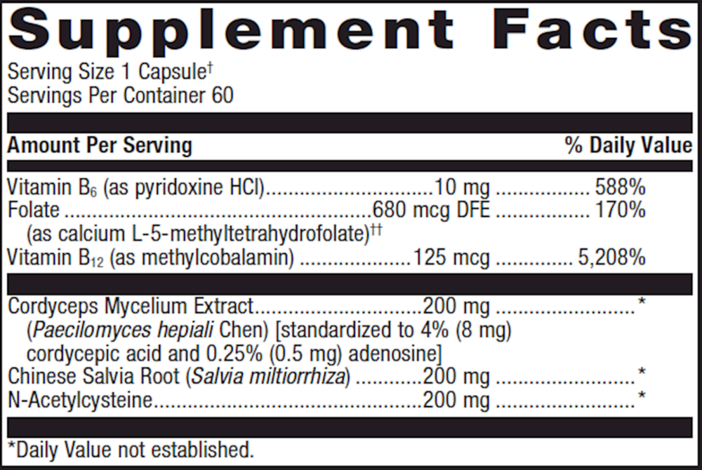 (Paecilomyces hepiali Chen [standardized to 4% (8 mg) cordycepic acid and 0.25% (0.5 mg) adenosine]