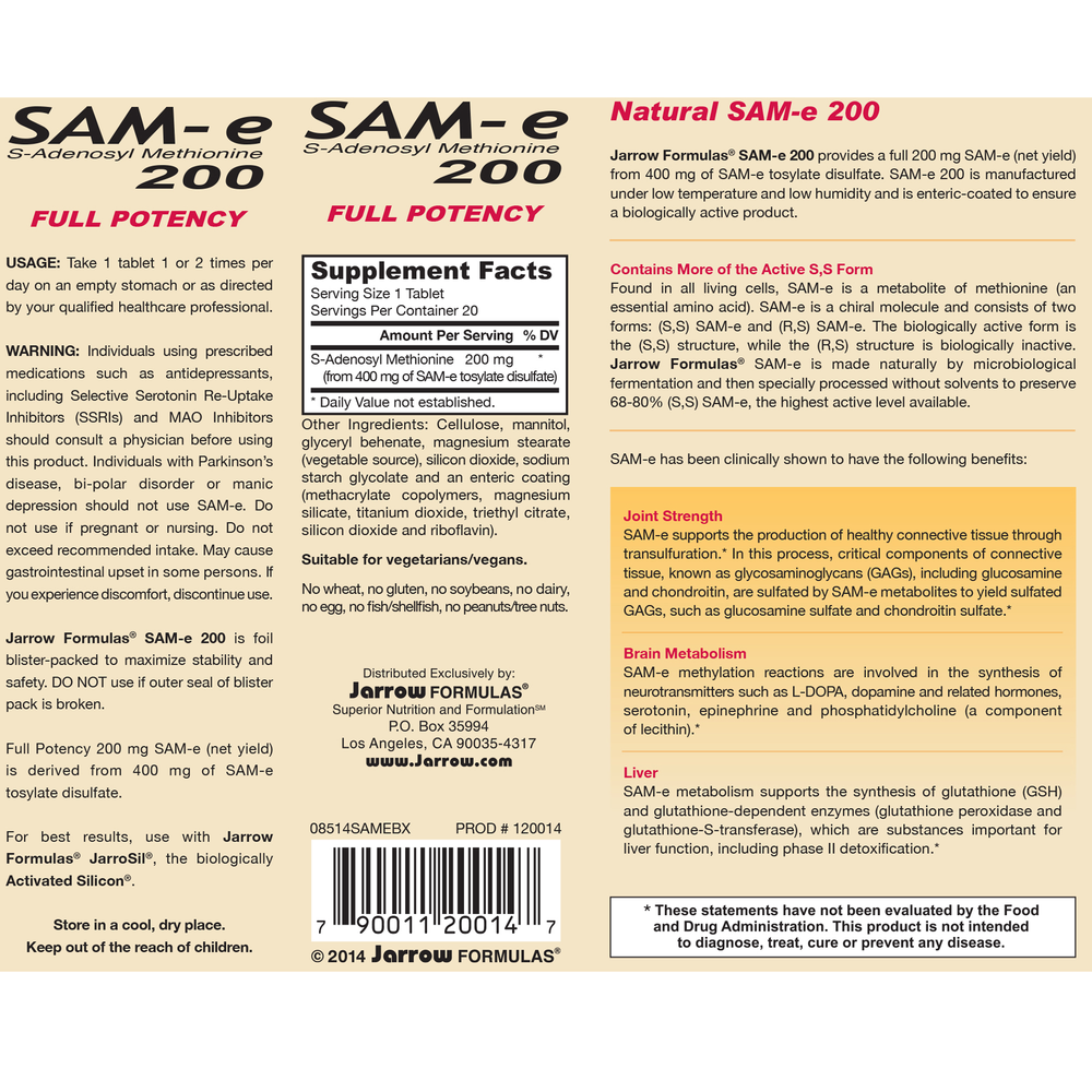 Jarrow Formulas Sam-e 200 200mg 20 tabs